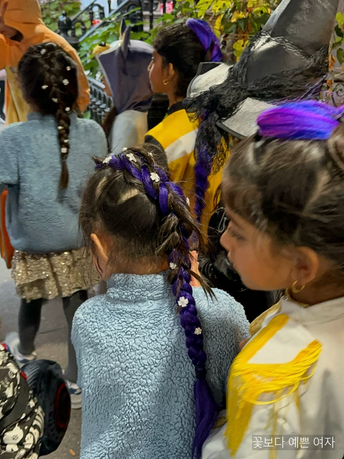 보라색 가발을 쓴 아이가 지나가자 주민들이 환호했다. 루미 코스튬을 입은 아이. 올해 가장 인기 있었던 핼러윈 캐릭터이다. 호박 모자를 눌러쓴 아이에게는 웃음과 박수가 이어졌다.
