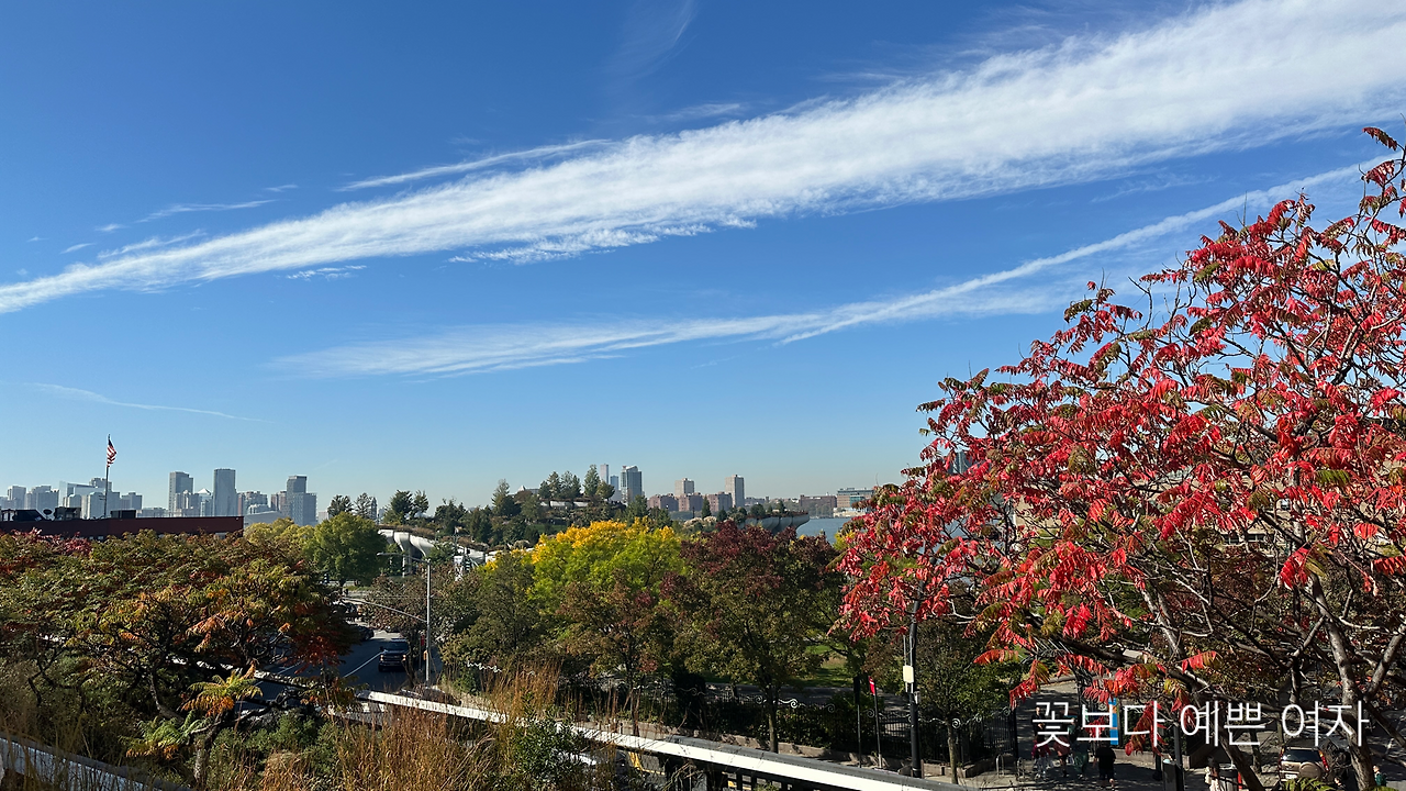 공원 끝으로 갈수록 허드슨강이 보인다. 맑은 날이면 뉴저지의 건물과 하늘을 가르는 비행기, 붉은 단풍 사이로 흐르는 강바람이 함께 느껴진다. 빠르게 움직이는 도시 속에서도 이곳에서는 시간이 잠시 느려진다.