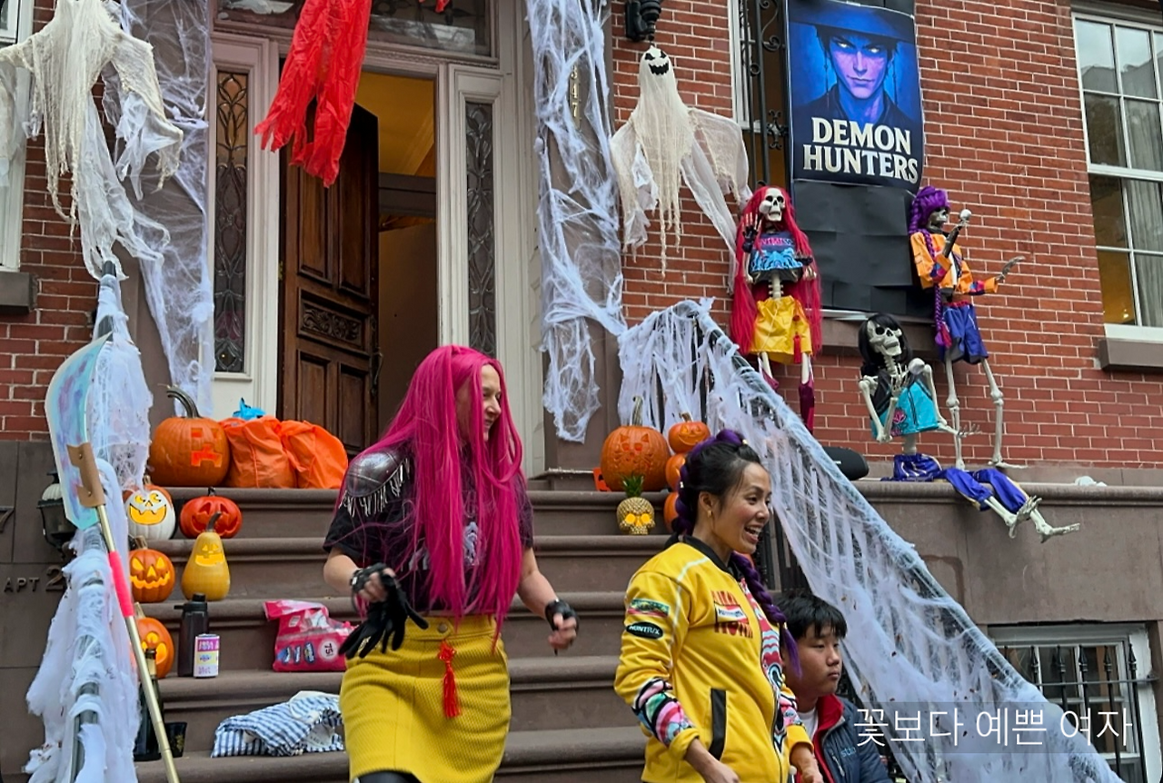 첼시 거리에서도 루미의 인기를 쉽게 볼 수 있었다. 한 집 벽에는 포스터가 붙고, 현관에는 보라색 가발을 쓴 해골 모형이 무대처럼 꾸며졌다. 아이들 중에는 머리를 보라색으로 염색하거나 반짝이는 장식을 단 아이들이 많았다. 친구들과 팀을 맞춰 입은 아이들도 눈에 띄었다.