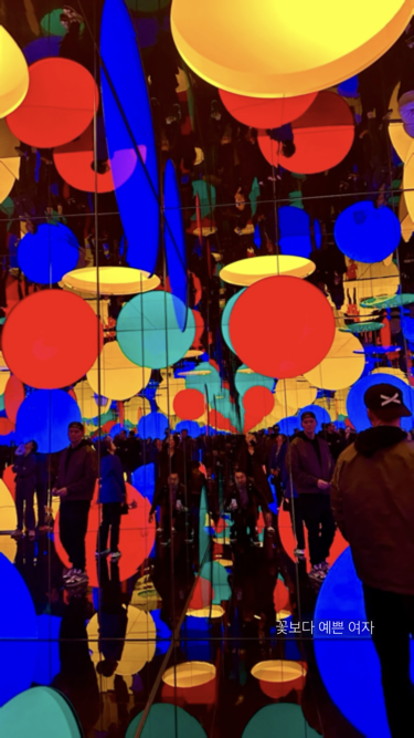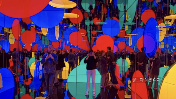 아침 일찍부터 차례를 기다리는 사람들의 줄이 길게 늘어섰다. 차례를 기다려 들어간 쿠사마 야요이의 인피니티 미러룸 (Infinity Mirror Rooms )은 1965년에 시작된 지속적인 설치 시리즈이다. 인피니티룸은 자연광과 인공광이 춤추는 무한한 우주 속에 서 있는 듯한 신비로운 세계였다. 작품의 거울로 된 벽면은 주변 환경을 반사하여 빨려 들어가는 듯한 착각을 들게 하며, 내부의 유색 구멍을 통해 여과된 빛은 끊임없이 변화하는 조명을 만든다. 거울이 만들어내는 무수한 반사에 시선은 고정되지 않고 공간 속에서 무한대로 움직인다.
