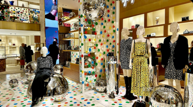 특히 2012년 루이뷔통 (Louis Vuitton ) 과의 협업 이후, 11년 만인 작년 2023년에는 두 번째 콜라보레이션인 루이뷔통 x 쿠사마 야요이 컬렉션 (Louis Vuitton x Yayoi Kusama)을 진행했다. 루이뷔통은 쿠사마 야요이를 신규 컬렉션 전면에 내세웠다.