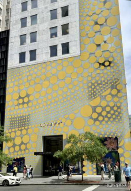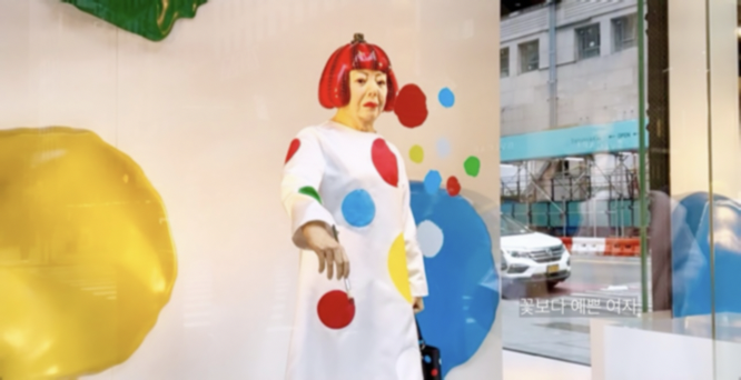 뉴욕의 5번가 루이비통 쇼윈도에는 그녀와 거의 흡사한 커다란 로봇(애니메트로닉스, animatronics)이 물방울무늬옷을 입고 등장해 물방울을 그리는 퍼포먼스를 하기도 했다. 가방, 의류, 선글라스, 향수, 신발 등 패션 전반에 걸친 협업 효과는 루이비통의 크게 증가한 실적으로 나타났다.