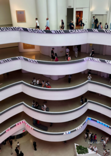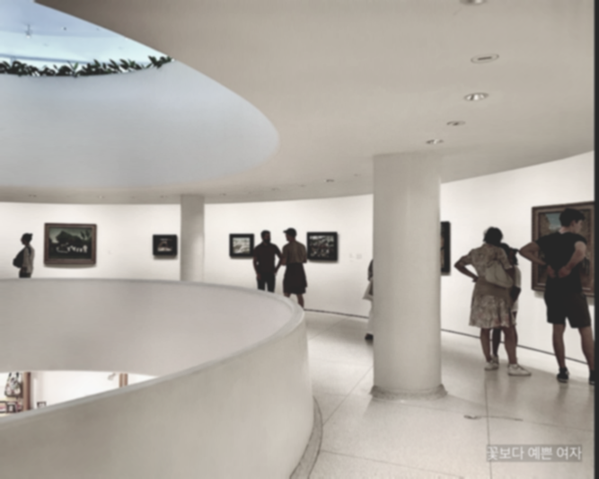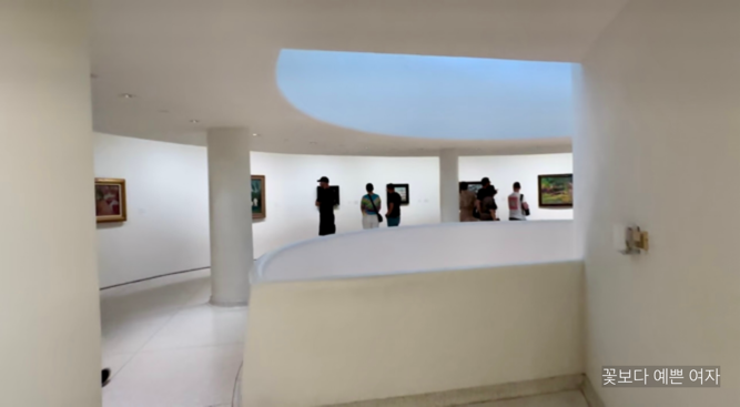 구겐하임의 경사로는 관람객들이 작품을 순차적으로 감상하게 하며, 관람객이 직접 자신의 이야기를 만들어갈 수 있게 한다.