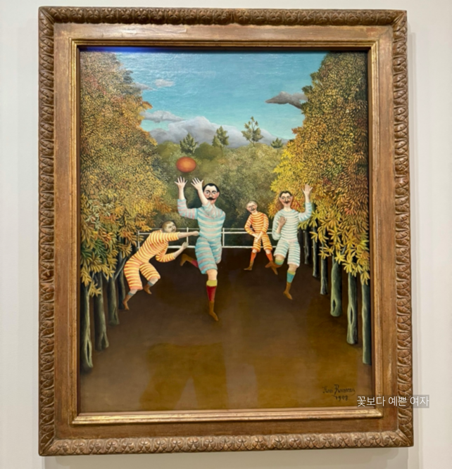 앙리 루소(Henri Rousseau)는 다른 예술가들과는 다르게 40대가 되어서야 본격적으로 그림을 그리기 시작했으며, 그의 그림에는 경쾌함이 담겨 있다. 1908년 작품인 <축구 선수들(The Football Players)> 은 마치 축구 선수들이 우리를 향해 공을 던지려는 듯 역동적이다. 그림 속 형태들은 평면적이면서 화면에서 살짝 나오는 듯 보이는 독특하고 기발한 스타일로, 이것이 루소가 본 현대 세계이며 그를 독창적인 예술가로 만든 특징이다.