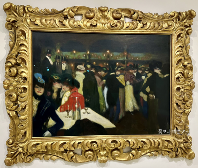 피에르 오귀스트 르누아르, 앙리 드 툴루즈 로트렉, 빈센트 반 고흐 등 여러 아방가르드 화가들이 이전에 이 장소를 묘사했으며, 피카소 역시 이들을 따라 다양한 손님들이 어둠 속에서 등장하는 장면에 초점을 맞추었다. 작품의 양끝에는 신비로운 인물들이 배치되어, 군중 속으로 향하는 길을 암시한다.