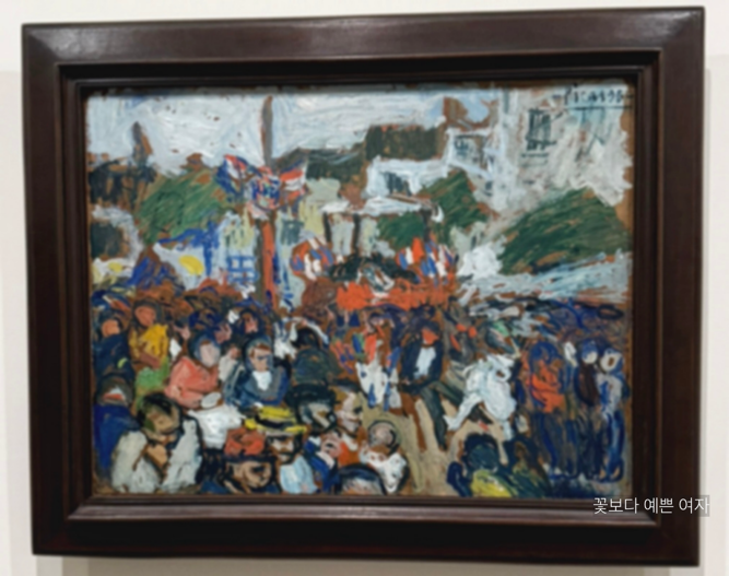 파블로 피카소의 <7월 14일(The Fourteenth of July)>은 1901년 여름에 그려진 작품으로, 프랑스의 국경일인 바스티유 데이 (Bastille Day)를 생동감 있게 묘사한 유화이다. 그림은 빨강, 흰색, 파랑을 중심으로 다양한 색채가 어우러져 있으며, 왼쪽에는 군중을 바라보는 인물들이, 오른쪽에는 몰려오는 군중이 묘사되었다. 피카소는 두꺼운 붓질로 국경일의 환희와 함께, 도시에서 목격한 소외와 가난의 우울함을 대조적으로 표현했다.