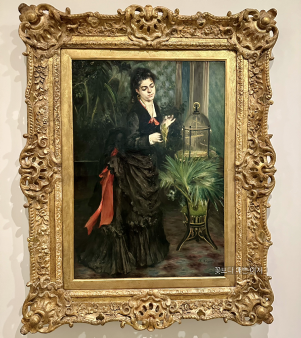 피에르 오귀스트 르누아르(Pierre-Auguste Renoir)가 한 여성과 그녀의 애완 앵무새를 그린 <잉꼬와 여자 (Woman with Parakeet)> 는 초상화와 장르화 사이를 오가는 특성을 보여준다. 이 그림을 그린 1871년의 그 시대의 특징을 담고 있는데, 고급스러운 옷과 배경을 통해 그 당시의 동반자(companion), 또는 코르티잔(courtesan, 情婦) 임을 알 수 있다.,