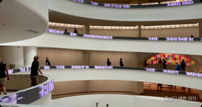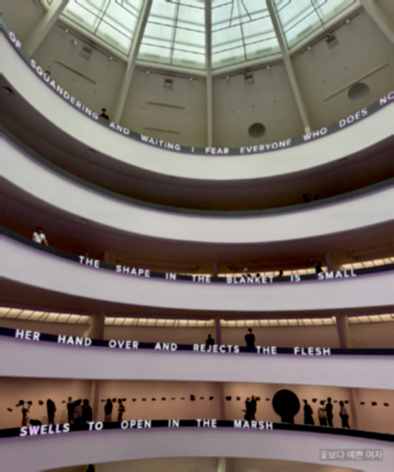 지난번에, 40년이 넘는 시간 동안, 공공장소와 국제 전시회에서 자신의 날카로운 생각을 글로 펼쳐 온 제니 홀저의 라이트 라인 ((Jenny Holzer: Light Line) 전시를 소개했다.