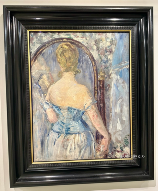 에두아르 마네(Édouard Manet)는 1876년에 네덜란드 왕위 계승자의 정부(情婦) 였던 유명한 여성을 그렸다. 당시 파리의 유흥 문화를 반영한 <거울 앞에서 (Before the Mirror)> 작품은 사적인 공간에서 순간적으로 포착된 여성의 모습을 느슨한 붓질로 강조하며, 시선이 그녀의 코르셋에 집중된다. 마네는 "새틴 코르셋이 우리의 시대에 새로운 누드일 수 있다"라고 표현했다.