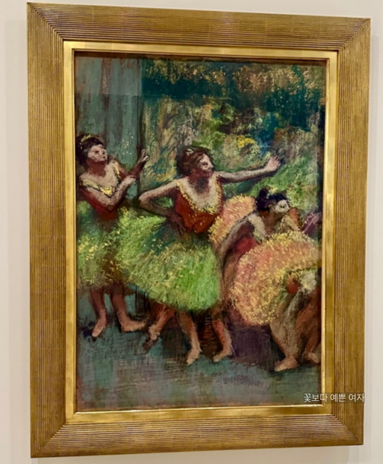프랑스 화가 에드가 드가(Edgar Degas)의 <녹색괘 노란색의 무용수(Dancers in Green and Yellow, ca).>는 19세기말 파리의 활기찬 분위기를 담고 있다. 발레리나들도 이 시기의 중요한 부분이었다. 드가는 말년에 무용수들을 자주 그렸으며, 종종 독특한 구도를 실험했다. 무대에 나가고 싶어 몸을 앞으로 기울이고 있는 무용수의 순간적인 장면을 포착한 느낌을 준다. 이는 드가가 사진 촬영에 관심을 가졌다는 증거이다.