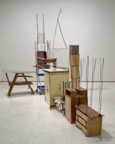 구겐하임 소장품의 일부를 선보이는 By Way Of: 재료와 움직임 (Material and Motion in the Guggenheim Collection) 전시는 예술가들이 전통적인 예술 창작 방식에서 어떻게 혁신적으로 벗어났는지 보여준다. 세상에서 버려진 물건과 쓰레기를 모아 작품으로 변모시키고, 전통적인 예술 재료 대신 일상적인 물건을 사용해 작품을 만든다.