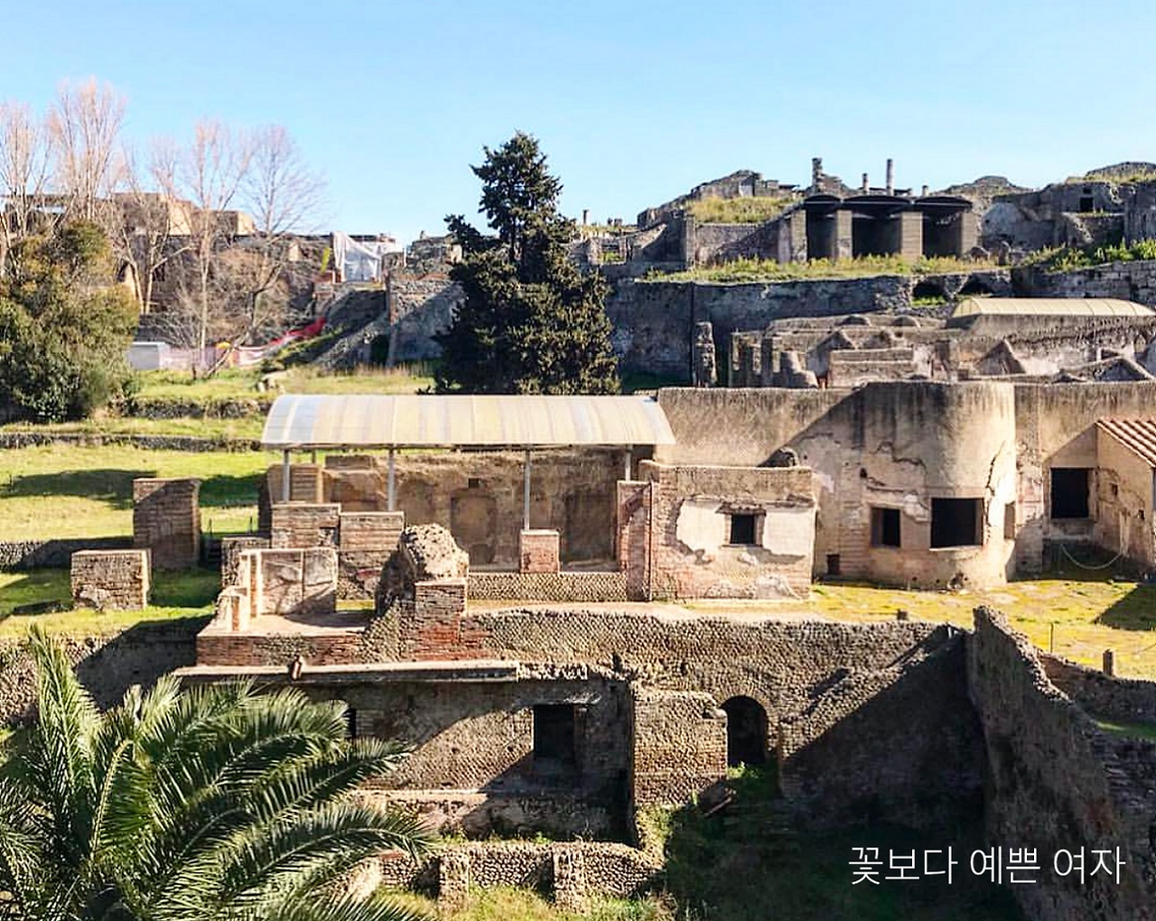서쪽 출입문이던 마리나 문(Marina Gate)과 아폴로 신전(Temple of Apollo), 광장(포룸, Forum), 목욕탕, 원형 극장(Amphitheater) 등 옛 시가의 3분의 2가 현재 드러났는데, 많은 유품이 거의 완전한 형태로 남아 있어 당시 전성기 로마의 일상생활의 모습을 상세히 전해준다. 걸어서 다 둘러보는데 세 시간 정도 걸렸다. 여행에서 가장 필요한 것은 역시 체력, 바로 건강이다.