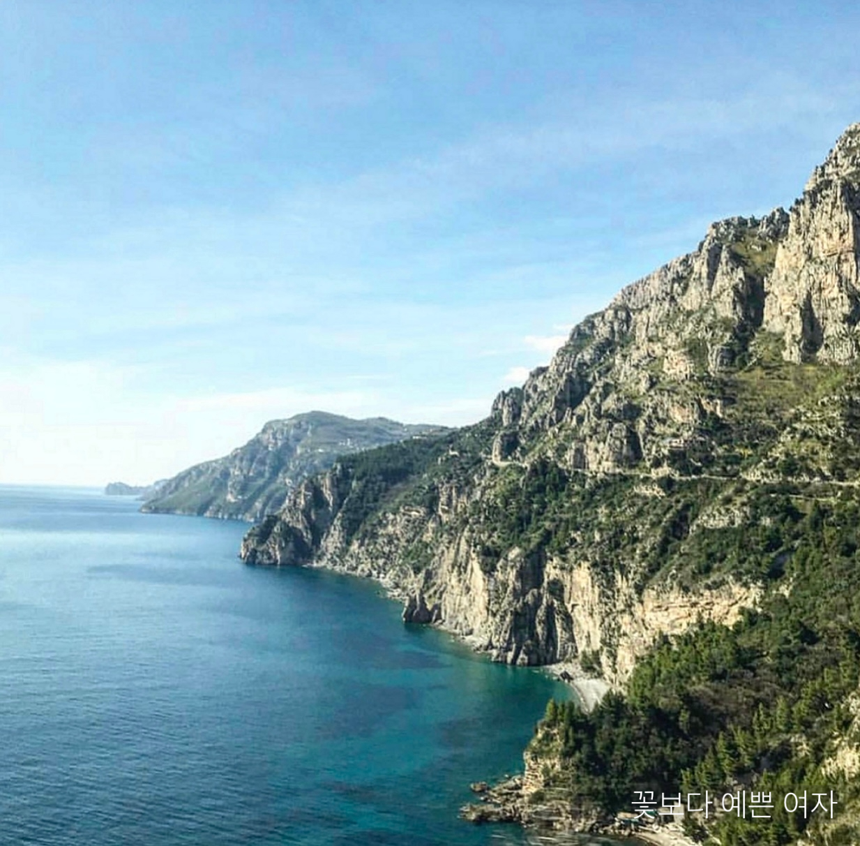 소렌토에서 SITA 버스를 타면 구불구불 SS163 도로(Amalfi Drive)로 이어지는 해안길은 한쪽은 깎아지른 듯한 산비탈, 다른 한쪽은 지중해인 에메랄드빛 티레니아 해(Tyrrhenian Sea)와 맞닿아 있다.