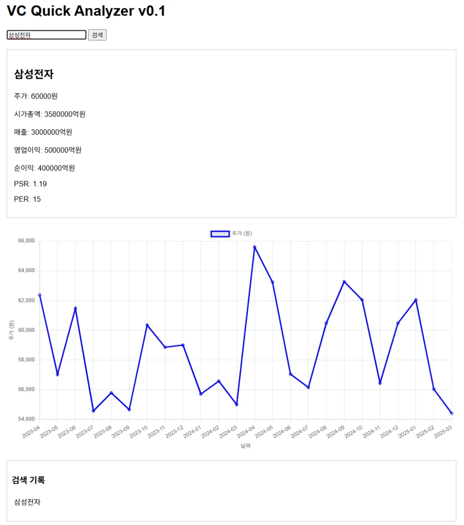VC 심사역으로서 회사별로 기업정보, 주가, 시가총액, 매출, 이익, PSR, PER 등의 주요 지표를 편리하게 비교 분석할 수 있는 도구가 필요했습니다.