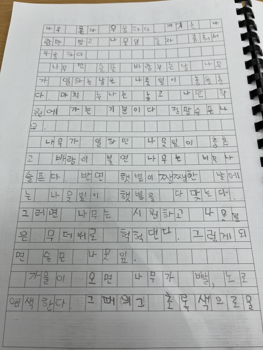 거대한 잿빛의 코끼리 같던 마음이 아이들이 쓴 글을 보는 순간 물방울로 변했다. 물방울들이 강으로 바뀐 차도를 두드리는 것처럼 나를 두드렸다.