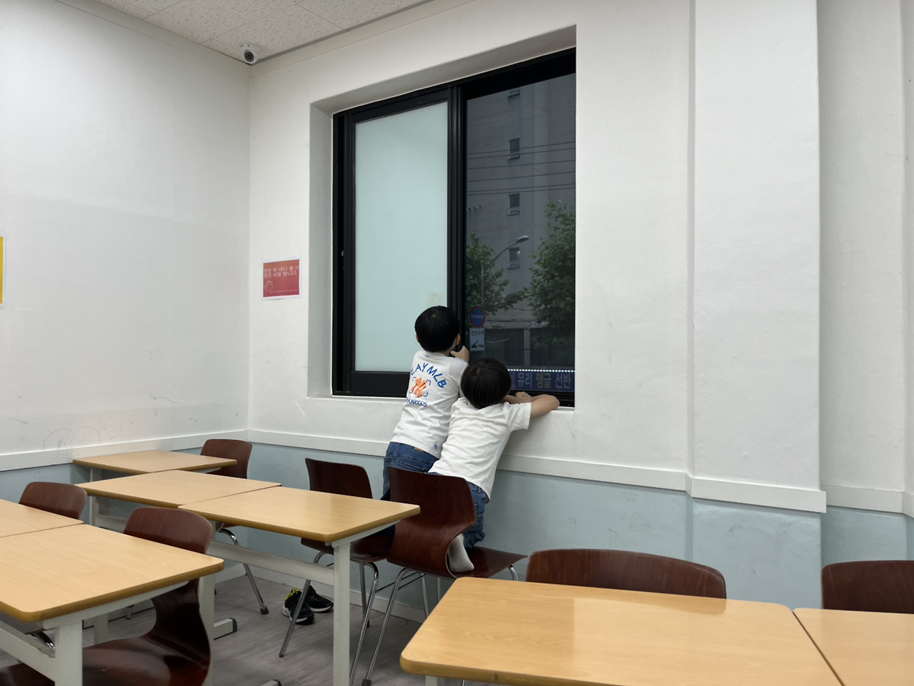 두 아이가 창문으로 달려가 밖을 내다보았다. 학교에서부터 봤을 바깥 풍경이 뭐가 그리 신기한지 의자까지 갖다 놓고 구경했다.