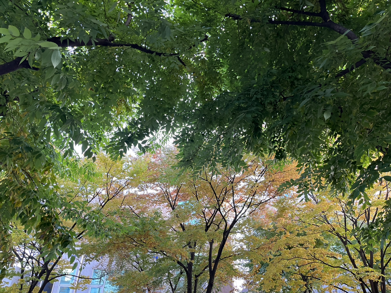 노란 느티나무 잎이 떨어지듯