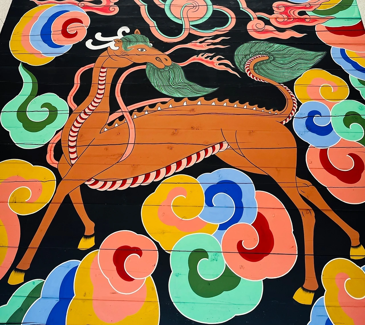 숟가락을 든 승려가 소반을 두드리며 흥겹게 말하자, 주모가 웃으며 마룻바닥을 탁 치고 그 말을 받았다.