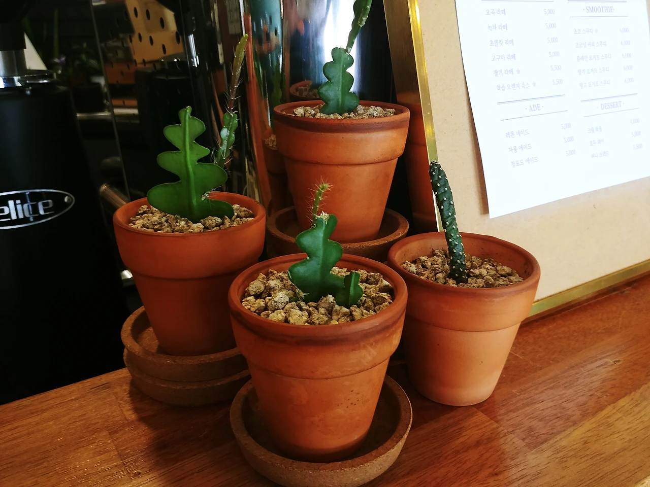 그때부터 학원 아래 커피숍의 화분들이 눈에 들어왔다. 크고 싱싱하고 건강한 식물들이 너무나 보기 좋았다. 커다란 화분부터 컵에 담긴 작은 식물과 토분에 자라는 선인장까지 모두가 거짓말처럼 안정감이 느껴졌다. 난 화분을 직접 관리한다는 사장님께 물었다.