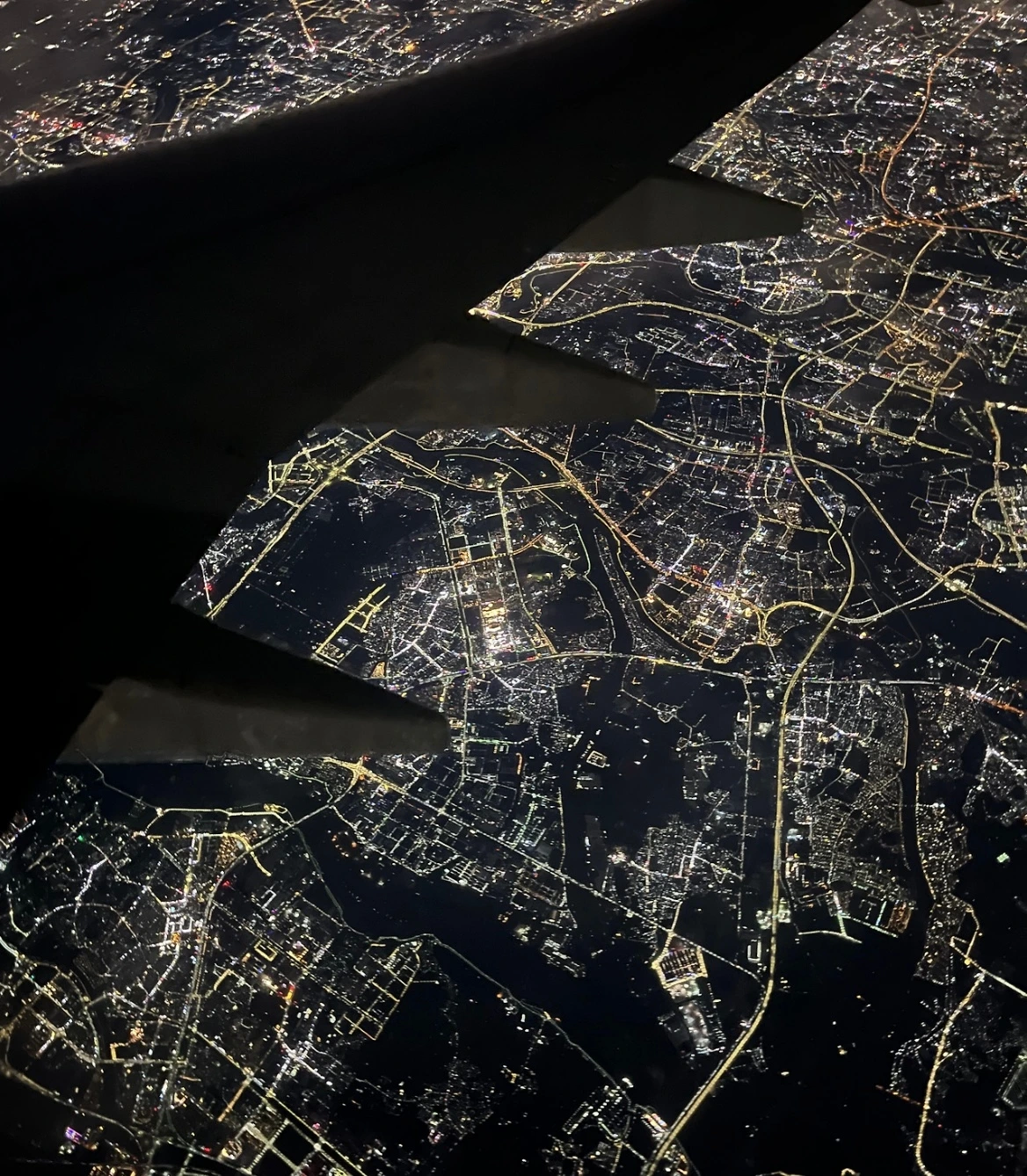구름이 걷힌 도시는 별빛 부스러기처럼 반짝인다. 저토록 반짝이는 도시는 어디일까? 비행기가 기울고 숨 막히는 공포가 찾아온다. 내려다보면 아름답지만 쏟아져 내릴 것 같은 아득한 두려움에 눈을 돌린다.
