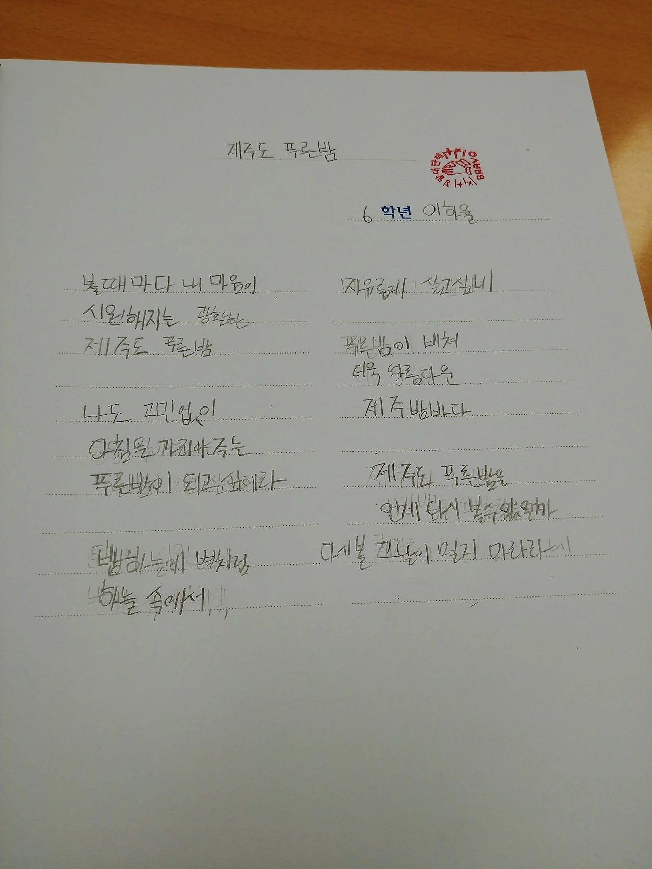 아이들의 글을 읽을 때, 정말 잘 쓴 아이가 아니라 진심으로 쓴 아이의 글에 왕도장을 찍어준다. 맞춤법이 조금 틀렸어도 글씨가 안 예뻐도 자신의 생각으로 쓴 아이의 글에 찬사를 보낸다. 아이는 잘했다는 말과 함께 그 도장을 보며 자신에 대한 뿌듯함을 느낄 것이다.