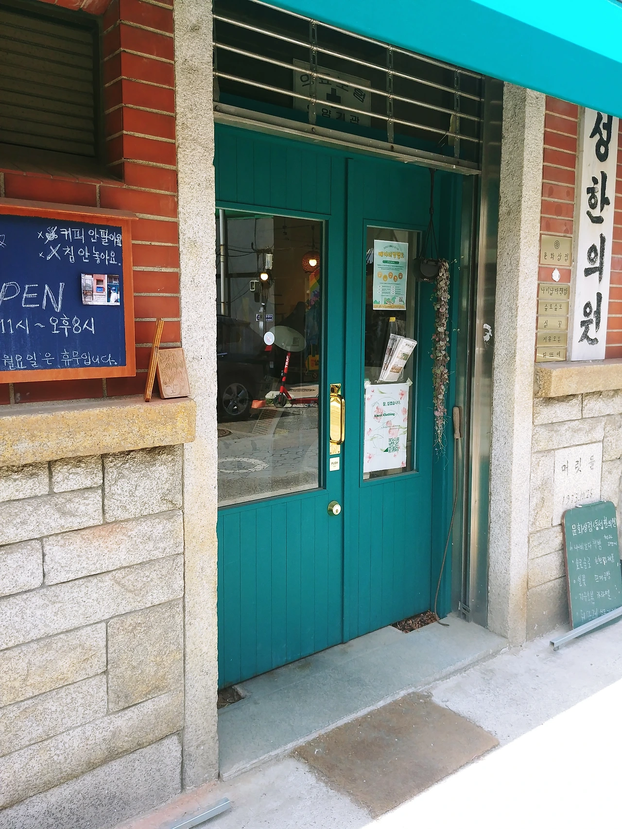 학원 근처에 있는 이 골목을 아침 출근길에 가끔 지나간다. 그러다 어느 날 파란 대문에 눈이 머물렀다. 옆에는 한의원이라는 간판이 걸려있었다. 멋진 한의원이란 생각에 가까이 갔다가 나는 더 멋진 걸 발견하고야 말았다.