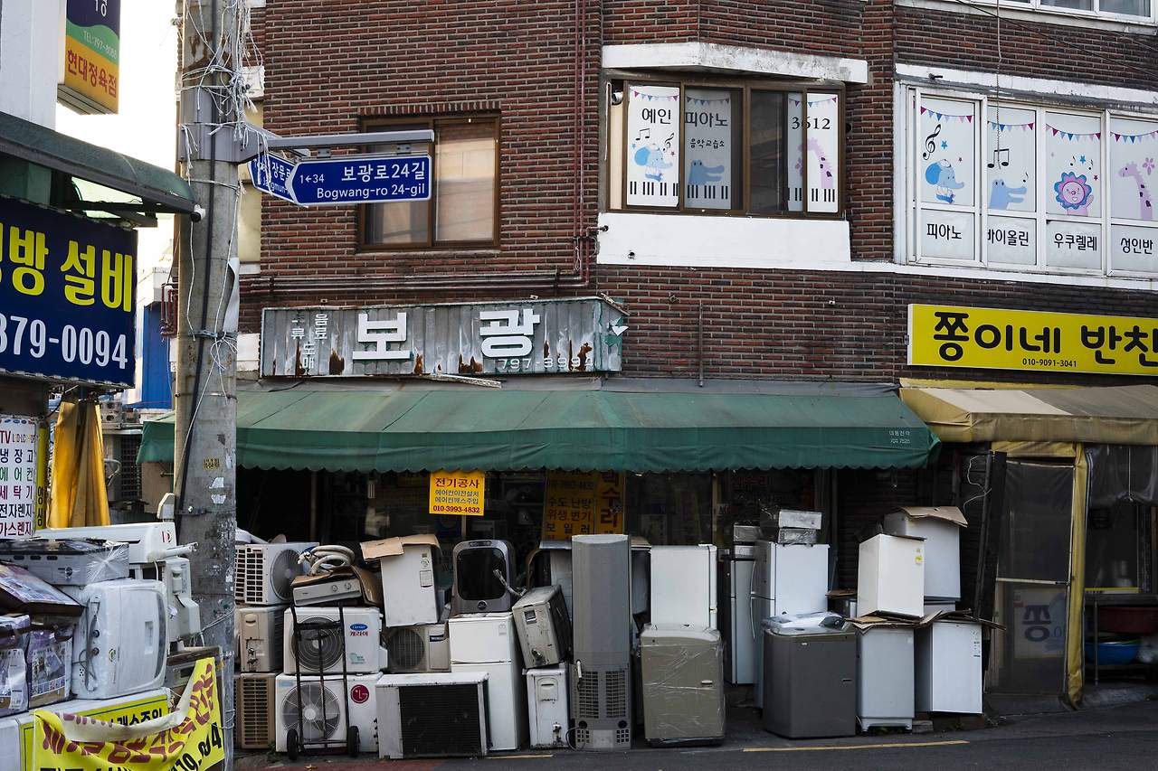 시선을 의식적으로 바꾸는 훈련도 필요하다. 늘 정면만 보고 걸었다면 고개를 들어 건물의 2층, 3층을 올려다보는 것이다. 1층에는 세련된 카페가 있지만, 2층에는 낡은 간판을 단 학원이, 3층에는 주인의 취향이 엿보이는 가정집의 베란다가 펼쳐지는 식이다. 하나의 건물은 서로 다른 시간의 층위와 삶의 양태를 품고 있는 작은 우주다. 땅을 내려다보면 맨홀 뚜껑에 새겨진 설치 연도가 이 길의 나이를 짐작하게 하고, 보도블록 틈을 뚫고 피어난 작은 들꽃이 끈질긴 생명력으로 말을 건넨다.