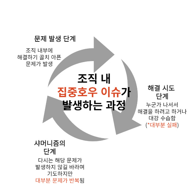 이 집중호우 사태를 보며 필자는 다른 것을 떠올렸다. 장기간에 걸쳐 지속적으로 관련 이슈가 있어왔고, 모두가 그 사실을 알지만 애써 무시하는 현상. 조직에선 이런 상황이 자주 벌어진다. 설명하기 편하게 '집중호우 사태'라고 하겠다.