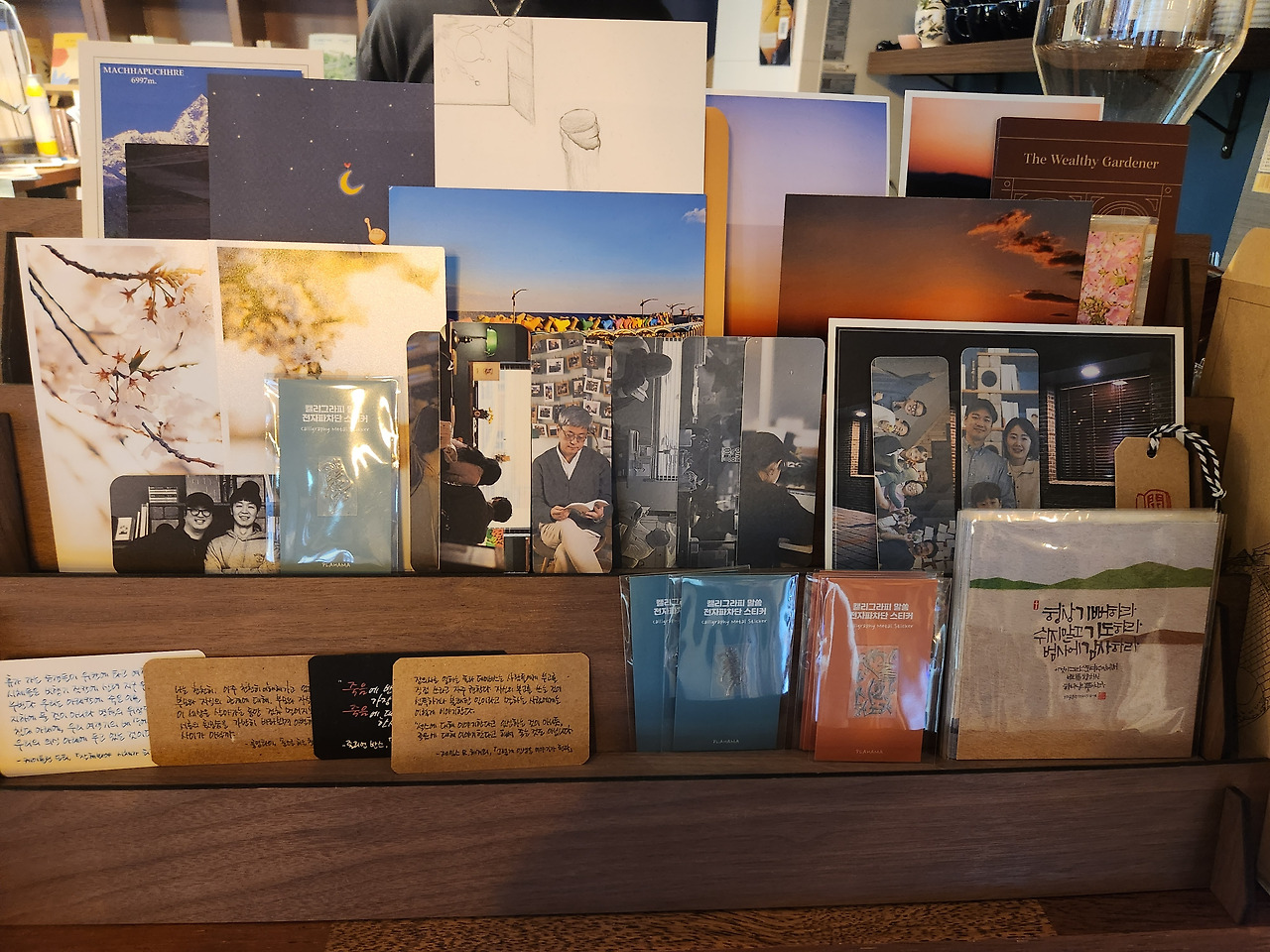 벚꽃 엽서와 주변에 꽂힌 엽서를 보며 써내려간 시
