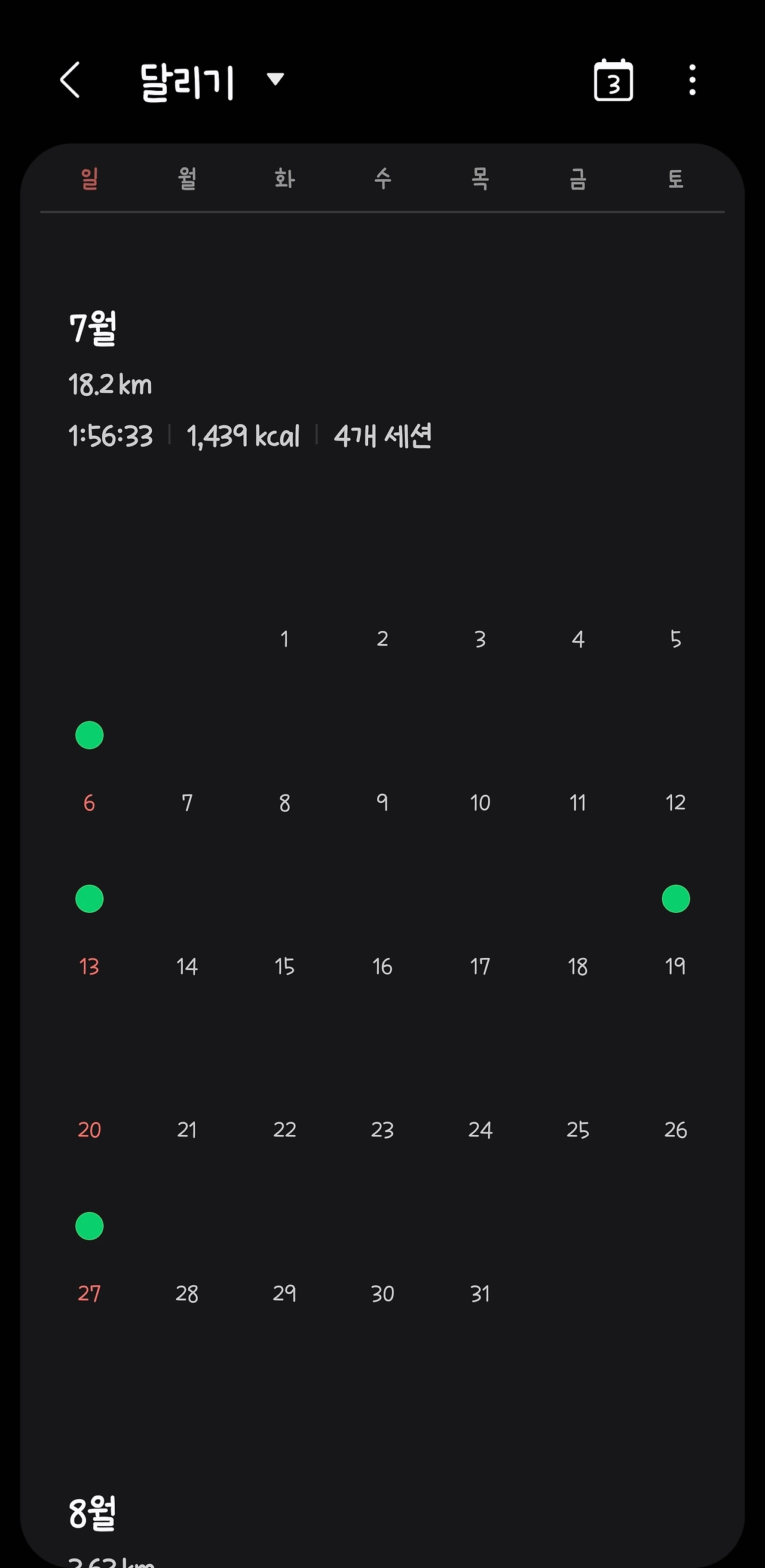 문제는 꾸준함이다. 8월에는 휴가도 계획되어 있어서 과연 마일리지 100km를 유지할 수 있을지 걱정이긴 하다. 휴가 중에 뛸 수는 있겠지만 가족들에게 민폐가 될 순 없으니 조금씩이라도 감을 유지하는 것을 목표로 하기로 했다.
