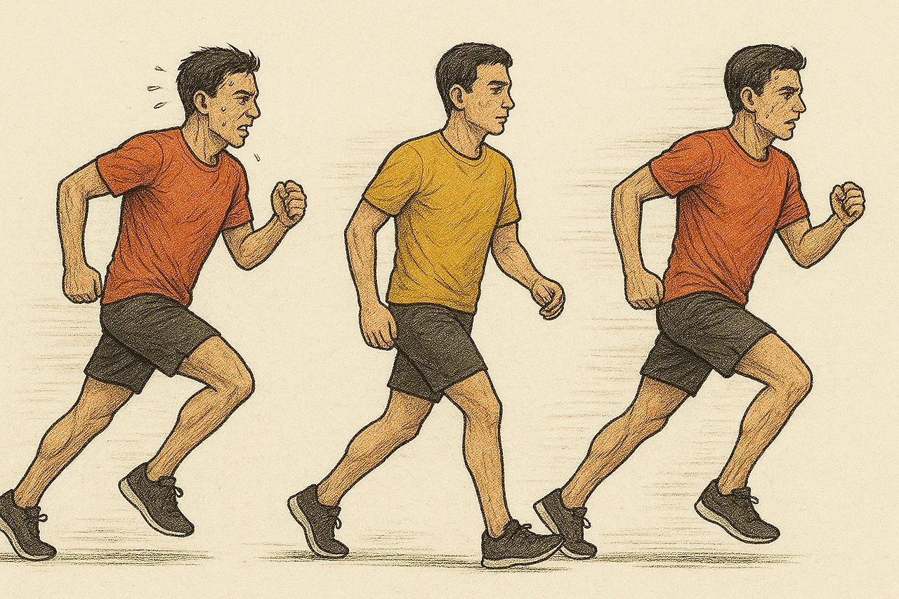 이렇게 변주를 주는 이유 중 하나는 자세를 바꾸면 사용하는 근육이 미세하게 바뀌어, 근육 그룹별로 잠깐씩 쉬는 시간을 주는 효과가 있기 때문이다. 실제로 골반이 수직으로 안정되면 햄스트링과 종아리를 주로 쓰는데, 경보로 뛰면 엉덩이와 고관절을 더 사용하게 된다.