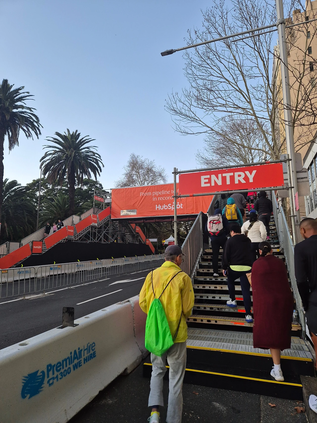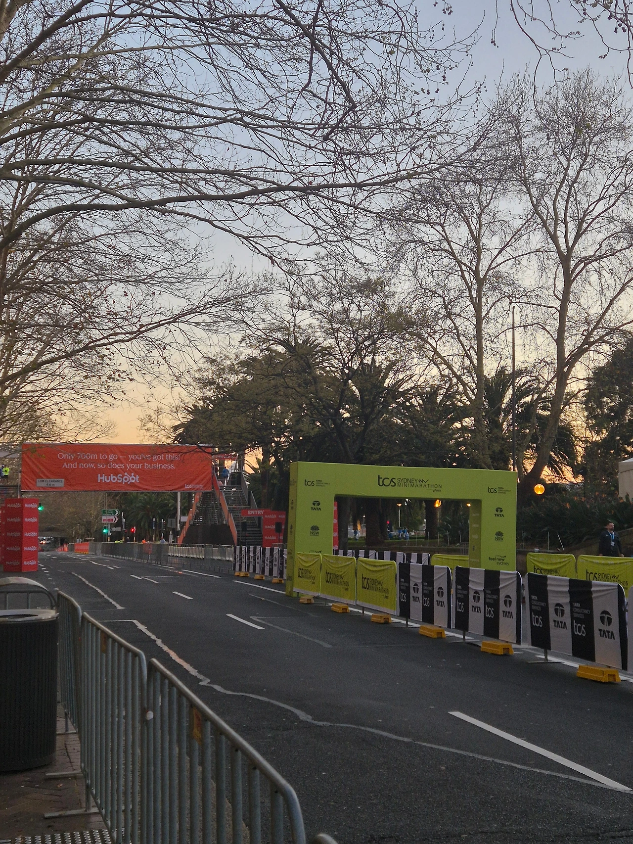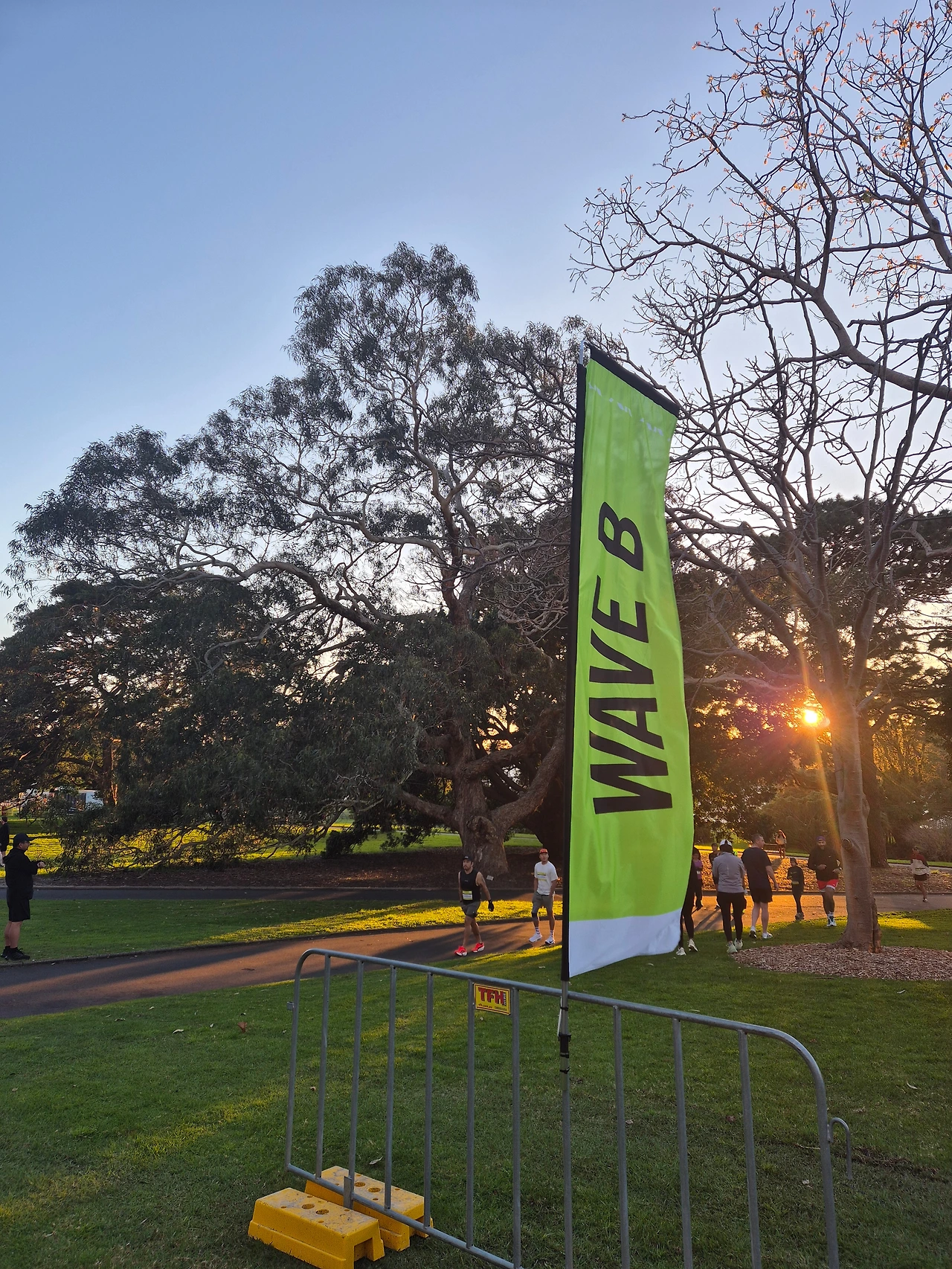 대회는 아침 7시 반이었는데, 6시 반까지 모이라고 해서 새벽을 뚫고 출발지에 도착했다. 조금 일찍 와서 인지 아직은 사람들이 별로 없었는데, 출발 게이트를 보니 조금씩 떨려왔다. 저기에 인식하는 센서가 있어서 저길 통과할 때부터 출발로 인식되는 방식이었다.