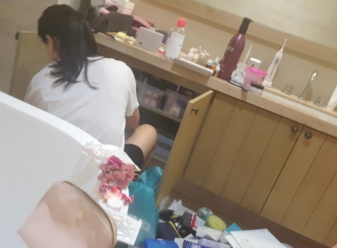 나의 오늘자 메인 타깃이었던 화장실의 경우 공간의 크기에 비해 많은 종류의 물건들이 필요하니 더욱 정리와 수납이 중요하다. 2020년 경 처음 정리할 때 화장실 수납장은 말 그대로 혼돈의 도가니였다. 언제부터 박혀 있었는지 모를 샴푸와 화장품 샘플 더미에 파묻히다시피 하며 아예 목욕탕 의자에 걸터앉아 몇 시간을 확인하고 버리는 시간을 가졌다.