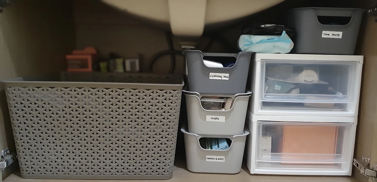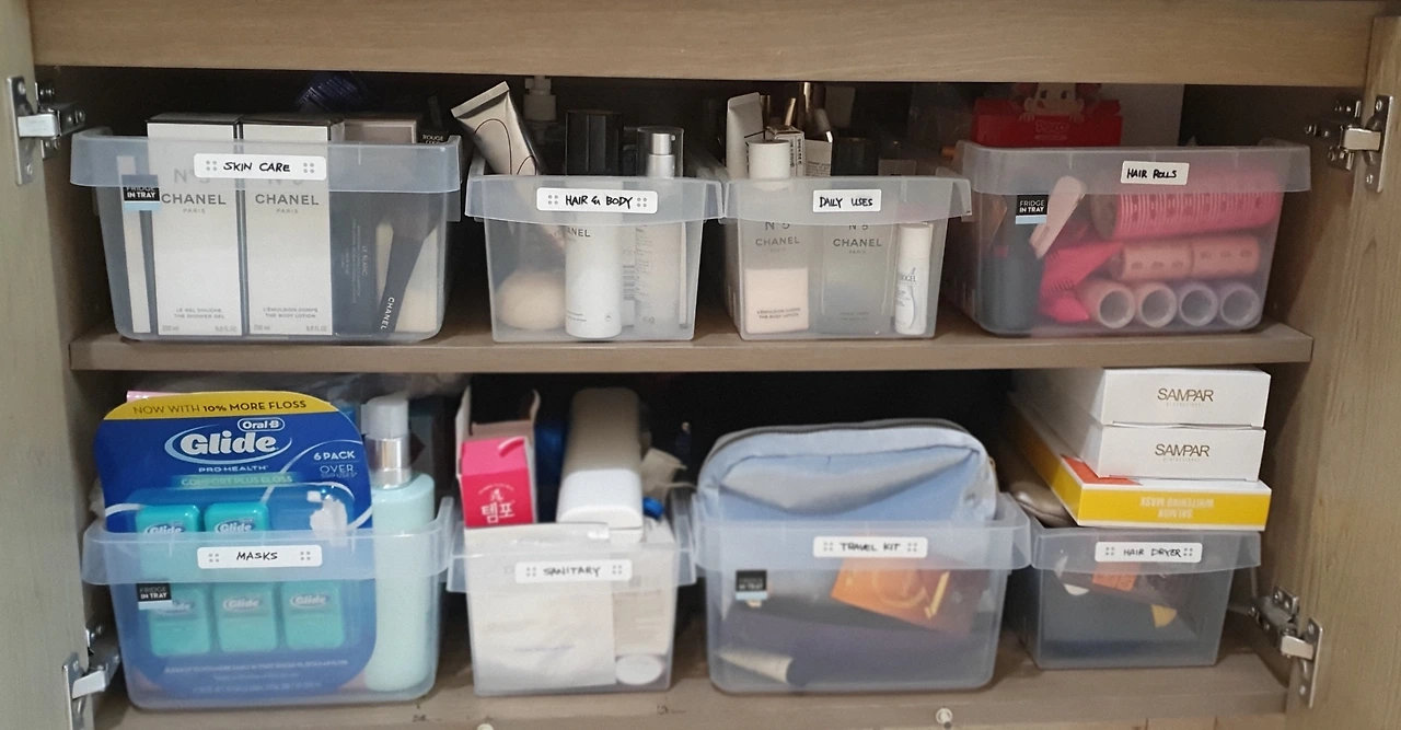 만 2년이 지난 지금 욕실은 여전히 처음과 같은 수납 시스템을 유지하고 있다. 대청소라고 해봐야 유통기한이 지난 몇몇 제품들만 골라내는 작업을 하면 되니 정리는 30여 분 안으로 끝낼 수 있다. 새로 산 제품의 보관 또한 각 구역에 맞게 넣어 두면 되므로 산 것을 잊고 다시 사는 일이 줄고 필요에 따라 채워 넣기만 하면 되니 복잡한 욕실 용품들 정리가 한층 쉬워졌다.