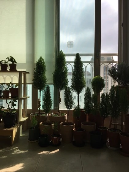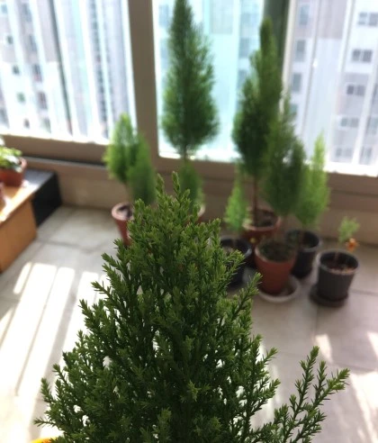 처음에는, 10센티 작은 율마였을 때는 매일 일어나는 아침 마 다작은 한 컵으로 주기 시작하다가 여름을 지나면서는 분갈이 후에는 1L 페트병 한 병을 모두 줄 만큼 쑥쑥 자라주었다. 열심히 물을 날라다 준 덕분인지 처음 화원에서 데리고 온 율마는 다행히 시들지 않고 일 년을 잘 자라 주었다. 매년 겨울이 오면서도 율마의 향과 초록함은 그대로였다! 사계절 늘 초록한 율마, 그 초록함만 보아도 늘 마음의 위로가 되었다. 그리고 율마 키우기에 조금 자신감이 생기고부터는 베란다 안에 작은 율마 숲을 만들어보고 싶었다. 그래서 나는 몇 그루의 율마 화분을 몇 개 더 데리고 오면서 나는 더욱 아침이 되면 물고픈 율마들의 물 주기에 바빠졌다.