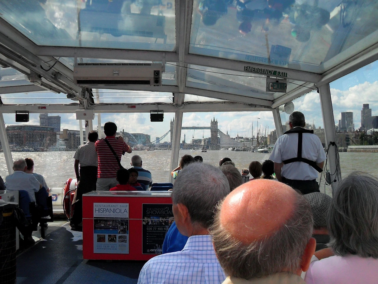 일정상 시간이 남아 테임즈강에서 유람선을 타기로 하였다. 테임즈강물은 물색깔을 보아서 한강보다 깨끗하지 않은 것 같았다. 약 40분가량의 코스로 유람선을 탔는데 강을 거슬러 가면서 강 주위의 건물들을 볼 수 있었다. 런던 브릿지 밑을 지나가게 되었는데 불행하게도 가져간 디카 배터리가 다 소모되어 강에서 바라본 런던 브리지 장면을 화면에 담지 못하여 아쉬웠다.
