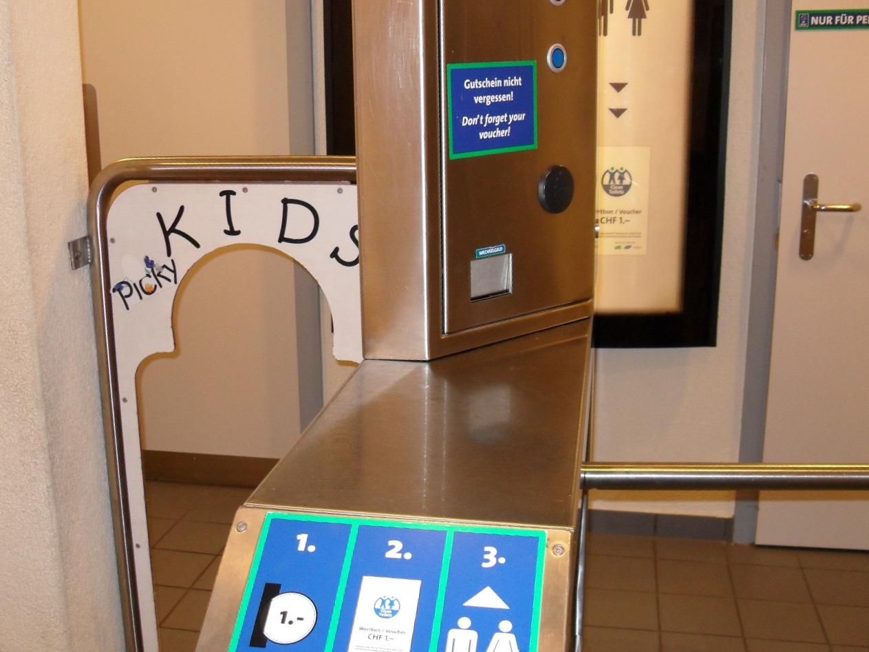 스위스로 가는 도중 휴게소에 들렀다. 한국에서의 고속도로휴게소보다는 규모가 작다. 그런데 유럽에서는 대개 휴게소의 화장실이 모두 유료이다. 화장실입구는 우리나라의 지하철 개찰구처럼 되어 있어 동전을 넣어야 통로가 열린다. 70센트를 넣으면 쿠폰이 나오는데 그중 20센트는 화장실사용료이고, 나머지 50센트로는 화장실과 붙어 있는 가게에서 물건으로 살 수가 있단다. 그런데 50센트로 살 수 있는 물건이 없으니 결국 돈을 더 보태 물건을 사는 상황이 벌어진다. 그런데 내가 동전을 넣으려고 하니 매장 여종업원이 키를 가지고 따라와 별도로 있는 장애인화장실문을 열어준다. 장애인들은 돈을 내지도 않고 별도의 화장실에서 볼 일을 볼 수 있단다. 음, 스위스가 좋긴 좋구나.