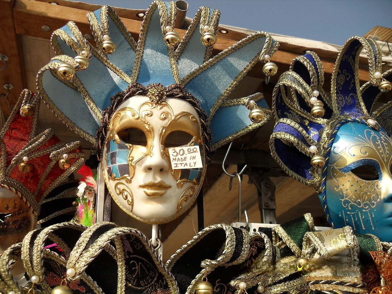 미로처럼 생긴 물길로 되어 있는 베니스의 뒷골목길은 좁아서 여러 대의 곤돌라가 지나가다 보니 교통체증이 생기기도 한다. 곤돌라를 타고 골목을 다니다가 다시 처음 선착장으로 돌아왔다. 곧 배를 타고 베네치아를 떠난다고 한다. 아직 보아야 할 것이 너무 많은데 벌써 떠난다고 하니 아쉽다. 산마르코광장을 거닐면서 좀 살펴볼 것도 많은데 아쉽다. 부둣가에는 기념품 가게가 많다. 가면을 파는 가게가 있어 유심히 보니 가면 1개의 가격이 20유로이다.
