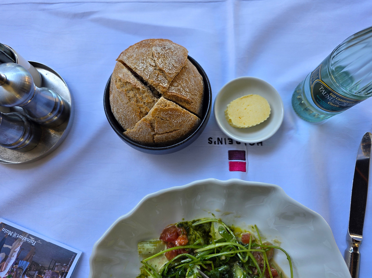 "나는 배고프다. 빵 조각이라고 줄 수 있느냐"라고 하니 흔쾌히 응한다. 잠시 후 십자가 모양으로 사등분된 딱딱한 빵 하나를 가져온다. 서비스 정신이 좋구나, 나는 그에게 두 번이나 Danke를 연발했다. 나온 빵은 조각하나 남기지 않고 그릇에 남은 올리브기름에 찍어 먹었다. 그런데 계산서를 받아 살펴보니 빵값이 포함되어 있었다! 공짜를 좋아하다 보니 공짜인 줄 알았는데 그게 아니었네, 계산서에 찍힌 빵값은 무려 4.5유로. 이럴 줄 알았다면 두 번이나 'Danke'를 연발하지 않았을 텐데
