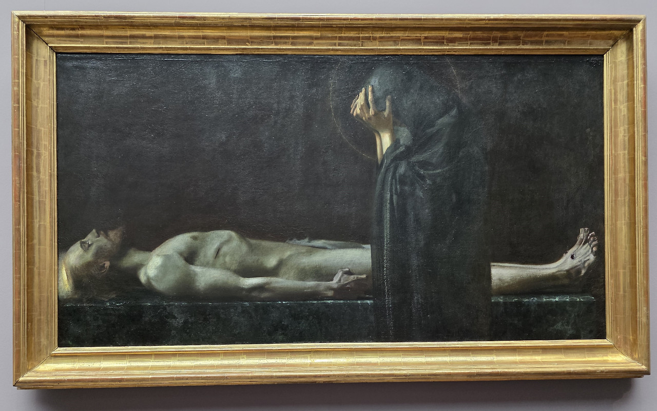 죽은 사람을 슬퍼하는 사람 모습이 그려진 그림도 보인다. 나는 본질적으로 밝은 그림보다는 우울하고 슬픈 감정을 표현한 그림을 더 좋아한다. 죽은 사람을 슬퍼하는 모습을 피에타라고 하는데 보통 죽은 예수를 안고 슬퍼하는 성모마리아를 그린 그림을 지칭한다. 바티칸 베드로 성당에 있는 미켈란젤로의 피에타는 대표적인 피에타. 술에 취한 듯한 사람이 등장하는 그림도 보인다. 어디서 많이 본 듯한 분위기의 그림이다. 뭉크. 그의 그림에 등장하는 인물들은 항상 흐리멍텅한 눈을 가지고 있거나 무언가 실성한 듯한 표정을 짓고 있는 사람이다. 슬픔이나 절망의 나락에 빠져 헤어 나오지 못하는 듯한 느낌의 사람들. 그의 눈은 휑하다. 흐리멍텅한 정신을 가진 나와 비슷하다. 이것이 뭉크 그림의 특색이다.