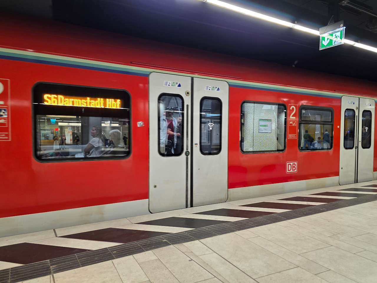 가는 김에 부근에 있는 Markthale(실내 시장)에도 가서 시장구경도 해야겠다. 이곳으로 가는 트램이 없어 S-bahn을 타기로 하다. 여행안내소에서 일러주길 이곳에는 박물관 같은 곳이 없기 때문에 박물관 할인기능도 있는 프랑크푸르트 카드는 필요 없다고 한다. 1일 교통권(one day ticket)을 구입하다. 안내소에서 준 출력물에는 기차 출발 시간과 승차할 플랫폼 P 101 표시까지 적혀 있었다. 휠체어 사용 시 필요한 경사로는 기차 내부에 비치된 것으로 이용한다고 하였다.