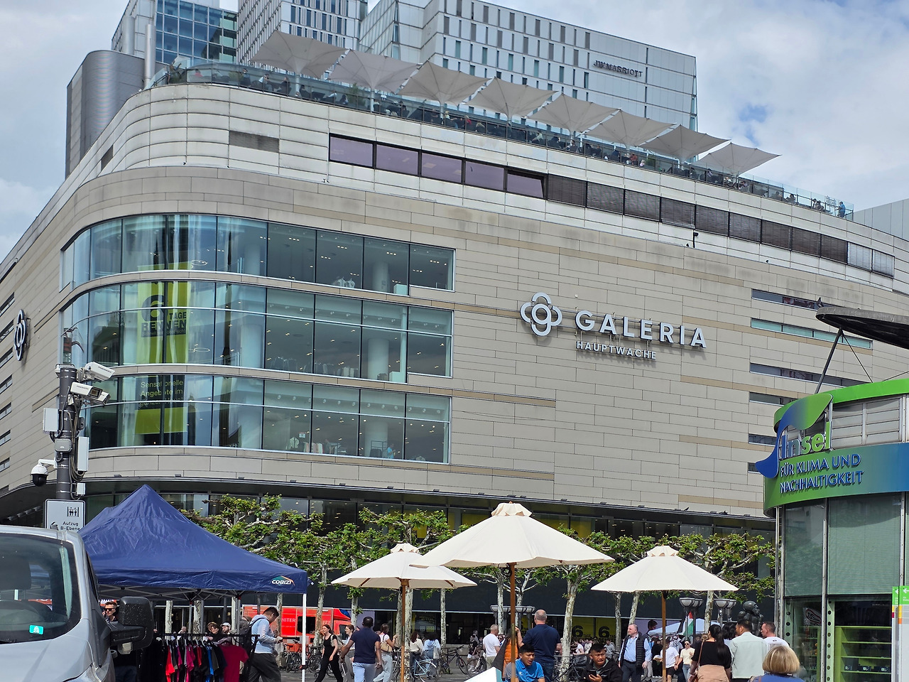 프랑크푸르트 중앙역에서 지하 승강장으로 내려가는 엘리베이터는 두 개가 있었는데 P 101방향 표시가 된 엘리베이터를 타다. 승강장으로 내려가니 양쪽으로 타고 내리게 되어 있다. 어느 쪽 기차를 타야 하는지 다른 사람들에게 물어 확인했다. 잠시 후 기차가 도착. 기차가 정차하는 맨 앞부분에 서있다가 기관사가 깔아주는 경사로 이용하여 탑승하다. Hauptwahe 역에 도착. 지상으로 올라오니 Galeria 리고 쓰인 큰 쇼핑센터가 보인다. 백화점위치는 확인해 두었으니 일단 Markthale부터 가보기로 한다.