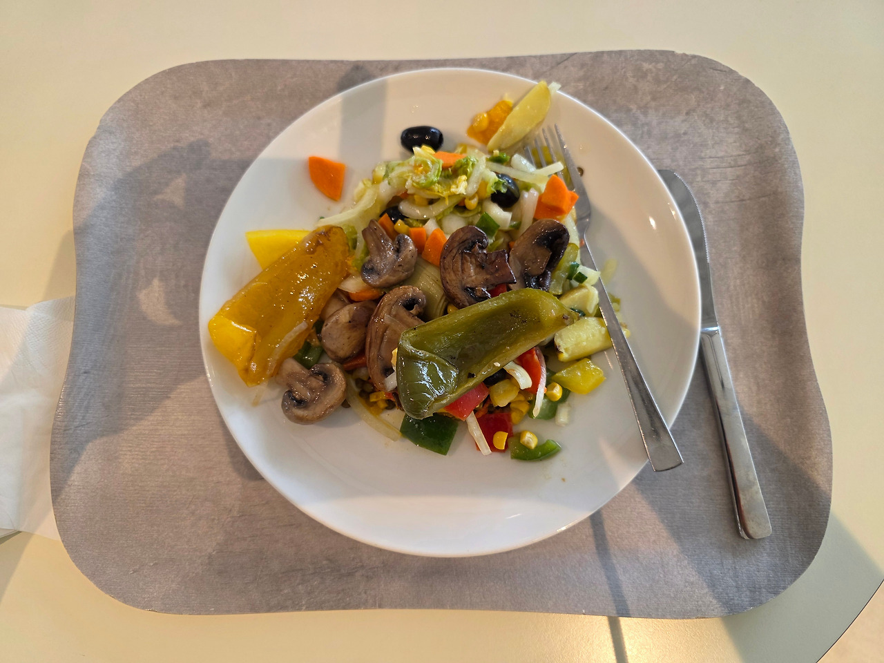 Hauptwahe 양쪽 거리에는 각종 의류가게 등 쇼핑거리가 형성되어 있었고 루이뷔통 같은 명품가게도 보였다. 대형 서점도 있었다. 그러던 중 식사시간이 되어 Galeria 쇼핑센터에 들어가 요기하기로 했다. 7층 건물인데 식당층은 7층. 7층에 내리니 입구에서 종업원이 무슨 카드를 내게 건네주면서 무어라 말을 하는데 무슨 말인지 모르겠지만 어디선가 이런 식당 시스템에 대하여 들어 본 적이 있어 짐작은 되었다. 7층에 내리자마자 직원으로부터 무슨 카드를 받는다. 푸드코트처럼 여러 개의 음식을 파는 코너가 있었고 이용자는 여러 코너를 돌면서 각자 원하는 음식을 선택한다. 음식을 선택할 때마다 입구에서 받은 카드를 찍으면 먹은 음식이 체크가 되고 나중에 나올 때는 먹은 음식 모두가 한꺼번에 계산되어 청구되는 식이다.
