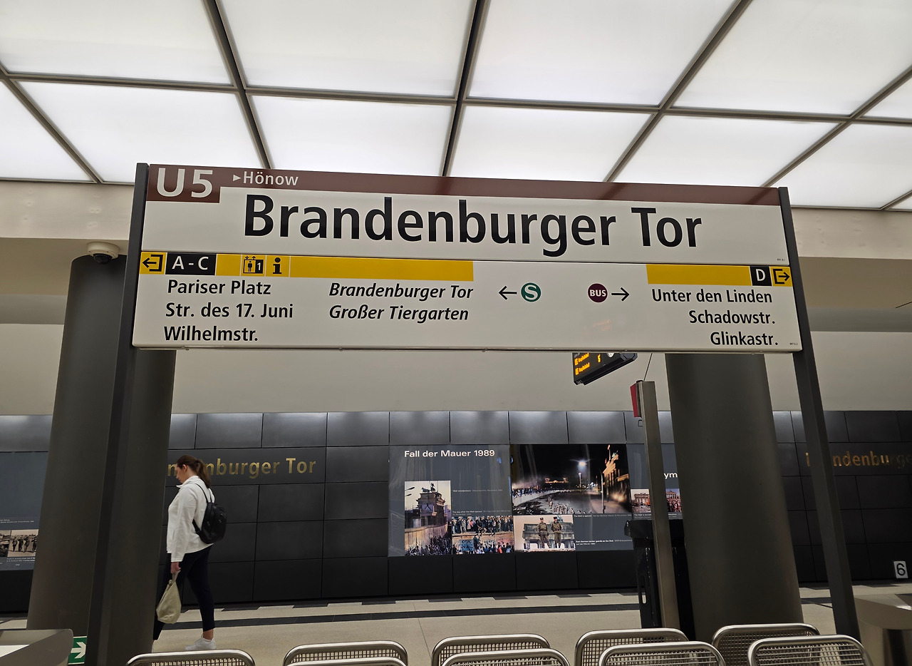 어디로 갈까, 베를린에서 가장 상징적인 장소 브란데부르크 문으로 가기로 했다. 휠체어를 타고 나섰다. DB reisezenntrum(독일 철도청 여행 센터)으로 가서 상담을 하고 Day Ticket(하루 교통권)을 끊었다. 여기서는 아주 친절하게 여행에 관한 모든 상담을 해주어 큰 도움이 된다. 지하철이 도착하였는데 승강장과 차량 사이에 단차가 있었으나 요령껏 승차. 드디어 브란덴부르크 문 역에서 하차. 승강장에서 대합실로 올라가야 한다.