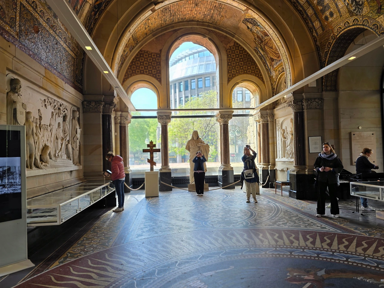 첫 번째 정류장은 카이저 빌헬름 교회. 세계 제2차 대전으로 폭격에 불에 탔으나 역사적인 교훈의 의미로 파괴된 상태로 보존한다고 한다. 정차 시간은 20분. 버스가 정차한 곳은 좁은 인도옆이었고 휠체어가 내릴 수 있는 경사로를 깔아주기에는 폭이 좁아 버스가 한번 앞으로 움직여야 했다. 일단 하차하였으나 시간 상 제대로 보지도 못하고 버스에 승차했다. 다음은 포츠담 광장인데 별로 볼 건 없고 넓은 광장에 찬 바람만 불어서 사람도 별로 없다. 다음 내린 곳은 체크포인트 찰리