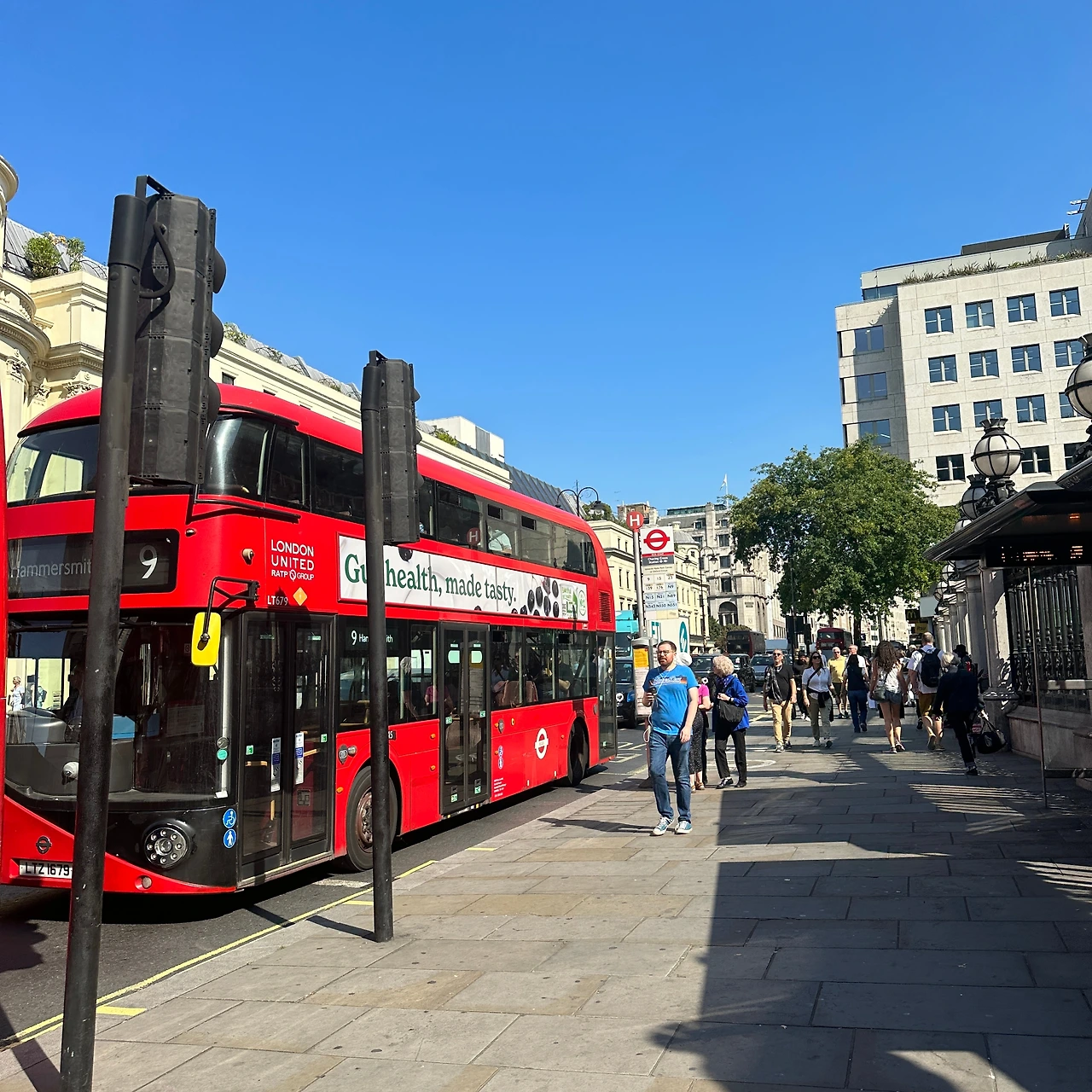 오늘 저녁에는 다른 곳으로 떠날 예정이다. 그래서 비좁았던 숙소와도 이별이다. 산뜻한 마음으로 숙소를 나왔다. 짐을 보관소에 맡긴 후 지하철을 타고 시내로 나섰다. 우리 눈앞엔 이층 버스가 다니는 런던 풍경이 펼쳐졌다. 런던을 상징하는 교통수단인 만큼 눈에 잘 담고 싶었다. 아기자기하고 귀여운 느낌의 이층 버스 앞에서 사진도 찍었다. 사람들이 많이 지나다녀서 조금 민망했지만, 누가 봐도 관광객이었기에 얼굴에 철판을 깔았다.