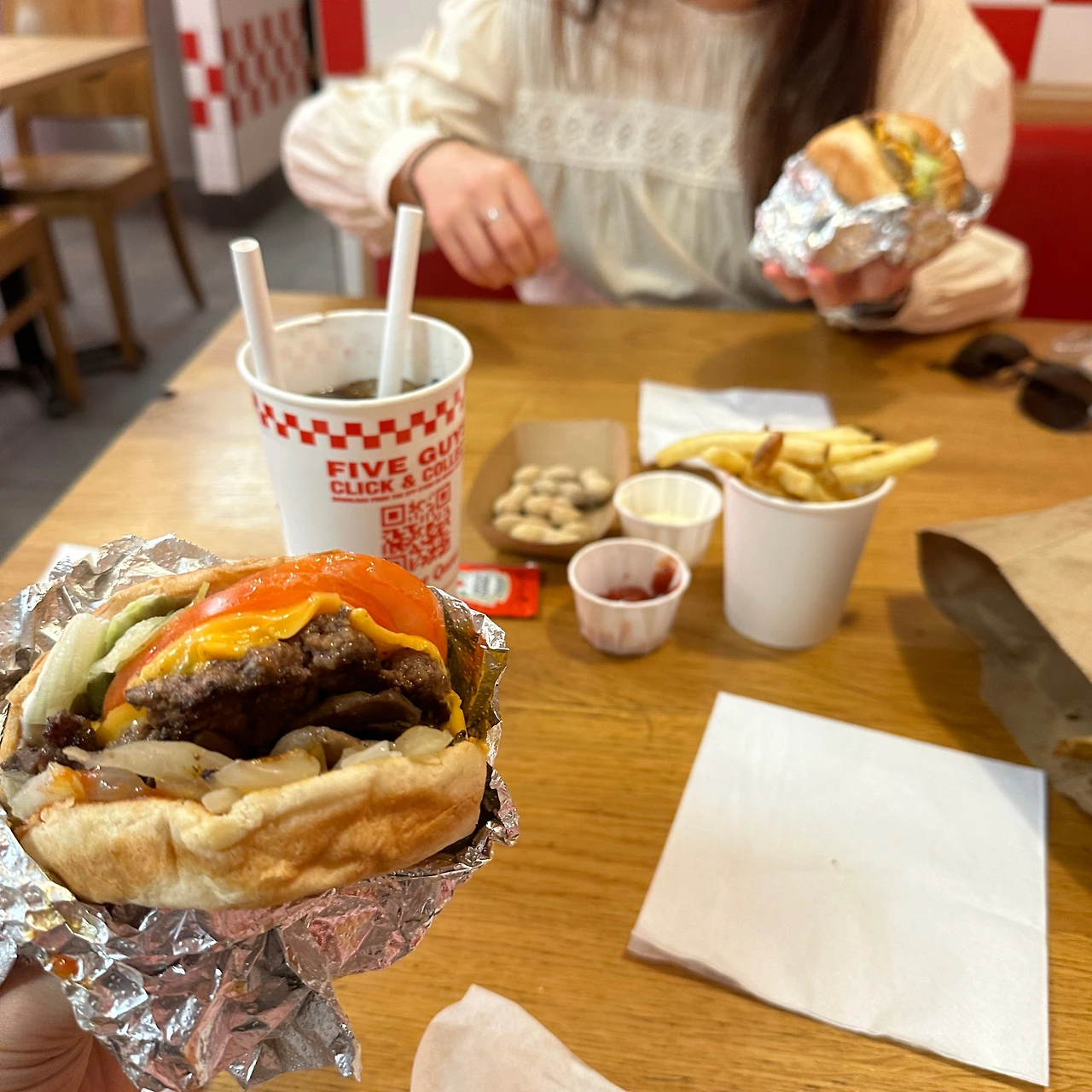 우리의 점심은 역시나 영국 음식이 아니었다. 미국 프랜차이즈 파이브 가이즈에 갔다. 최근 미국에 다녀온 주디언니가 추천해서 가게 됐는데, 처음 먹어본 미국 버거맛에 놀라지 않을 수 없었다. 땅콩도 매력적이었다. 우리는 이걸 계기로 파이브 가이즈 단골이 되었다.