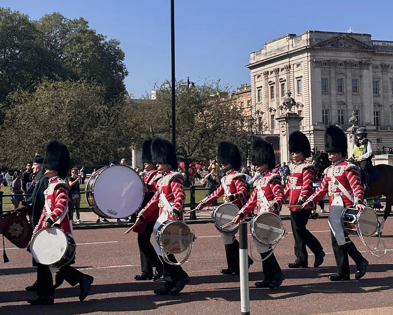 한참 걷자 버킹엄 궁전이 보였다. 우리의 오늘 주요 일정은 근위대 교대식을 보는 것이다. 인파가 엄청나게 몰렸다. 마치 누군가 “각 나라에서 3명씩 모이세요.”라고 말한 것처럼. 다양한 국가의 사람들이 모였다. 베어스킨 햇을 쓰고 발을 맞춰 걷는 근위대의 모습은 이루 말할 수 없이 근엄했다. 누군가는 말을 타고 무리 맨 앞을 지켰고, 누군가는 악기를 연주했다. 그리고 또 다른 누군가는 왕실을 지키기 위해 계속해서 주변을 순찰했다. 마치 동화 속에서 튀어나온 이들 같았다. 이후에는 런던 브리지를 거닐며 런던 아이를 멀리서 구경했다.