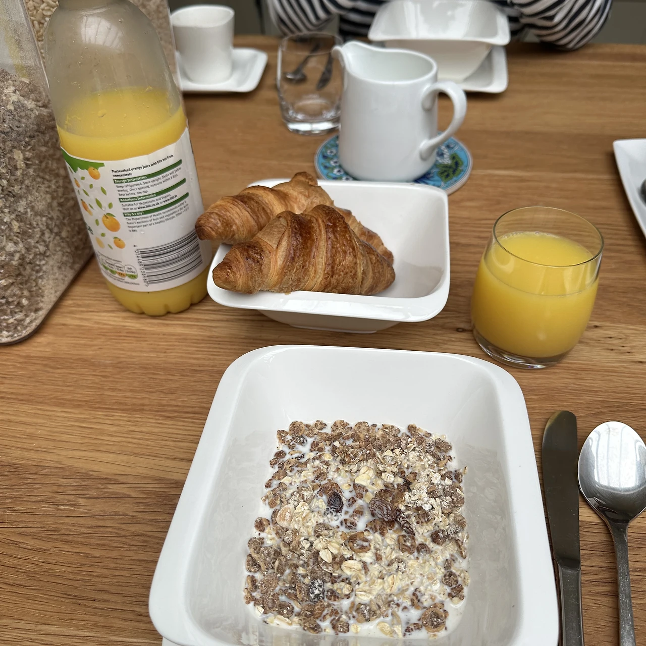 이른 아침 비니, 앨리스 부부와 아이들의 목소리로 자연스럽게 잠이 깼다. 대충 눈곱만 떼고 1층으로 향했다. 앨리스는 잘 잤냐며 잠자리가 불편하지 않은지 물었다. 비니는 아침 식사를 준비하며 여러 가지 메뉴에 관해 설명해 주었다. 따뜻하게 구워준 크로와상에, 시리얼 그리고 오렌지 주스까지. 너무 든든한 식사였다. 식사를 하면서 이런저런 이야기를 나누었다. 나는 귀가 빠지도록 집중했지만 다 이해하기는 어려웠다. 주디언니를 통해 전해 듣기도 하고, 아는 영어를 끌어 모아다가 말하기도 했다. "우리는 지금 퇴사를 했어. 그래서 유럽에 왔고, 카디프가 궁금해서 오게 됐어."라고 말하자 비니는 환호성을 지르며 "퇴사 축하해! 행복한 유럽 여행이 될 거야."라고 응원했다. 그 응원은 아직도 생생한 기억이다.