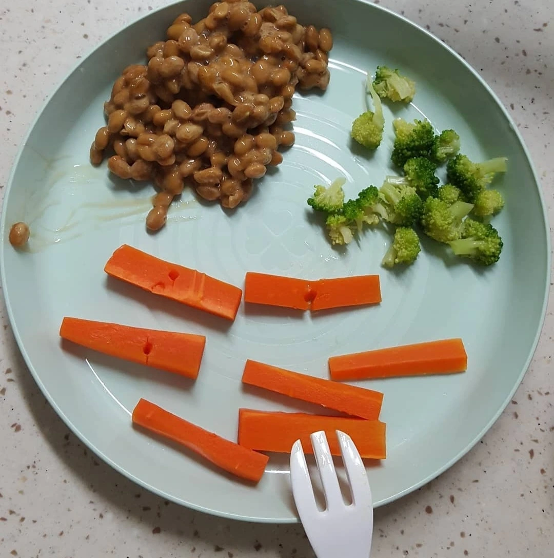 밥, 낫또, 브로콜리, 당근
